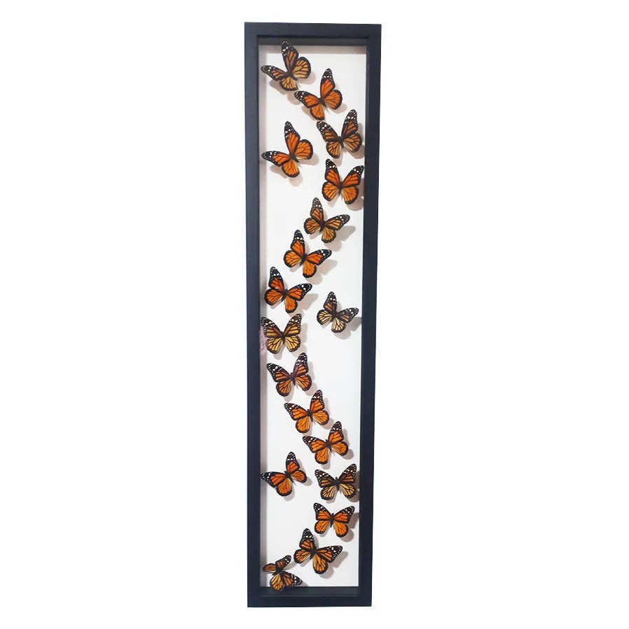 18 Monarch Butterflies, Wood frame, Double glass, Hanging D-ring